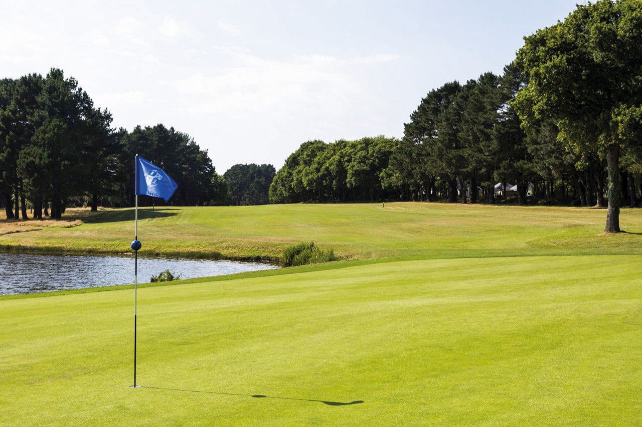 Just a few kilometers from the Atlantic Ocean is the largest golf course in France with 45 holes, consisting of two 18-hole courses, Lucien Barrière (Rouge) and Diane Barrière (Bleu), as well as a 9-hole course. The Bleu course extends to the north. It has large bunkers and wide fairways, 9 of which meander around a large lake.