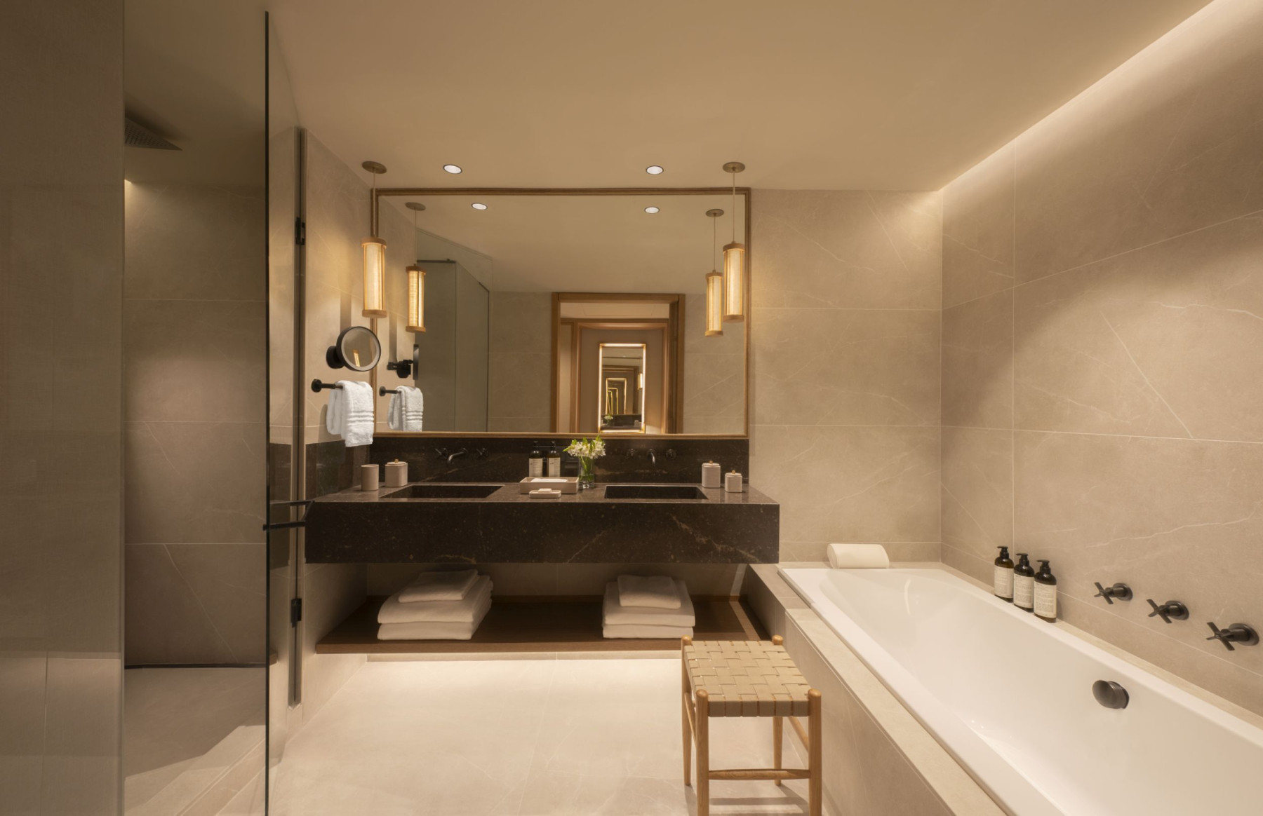 The 1'800 square meter spa is an oasis of relaxation with steam baths, saunas, experience showers and a heated indoor pool. Exclusive treatments, massages and beauty rituals ensure holistic well-being, complemented by a modern fitness area.
