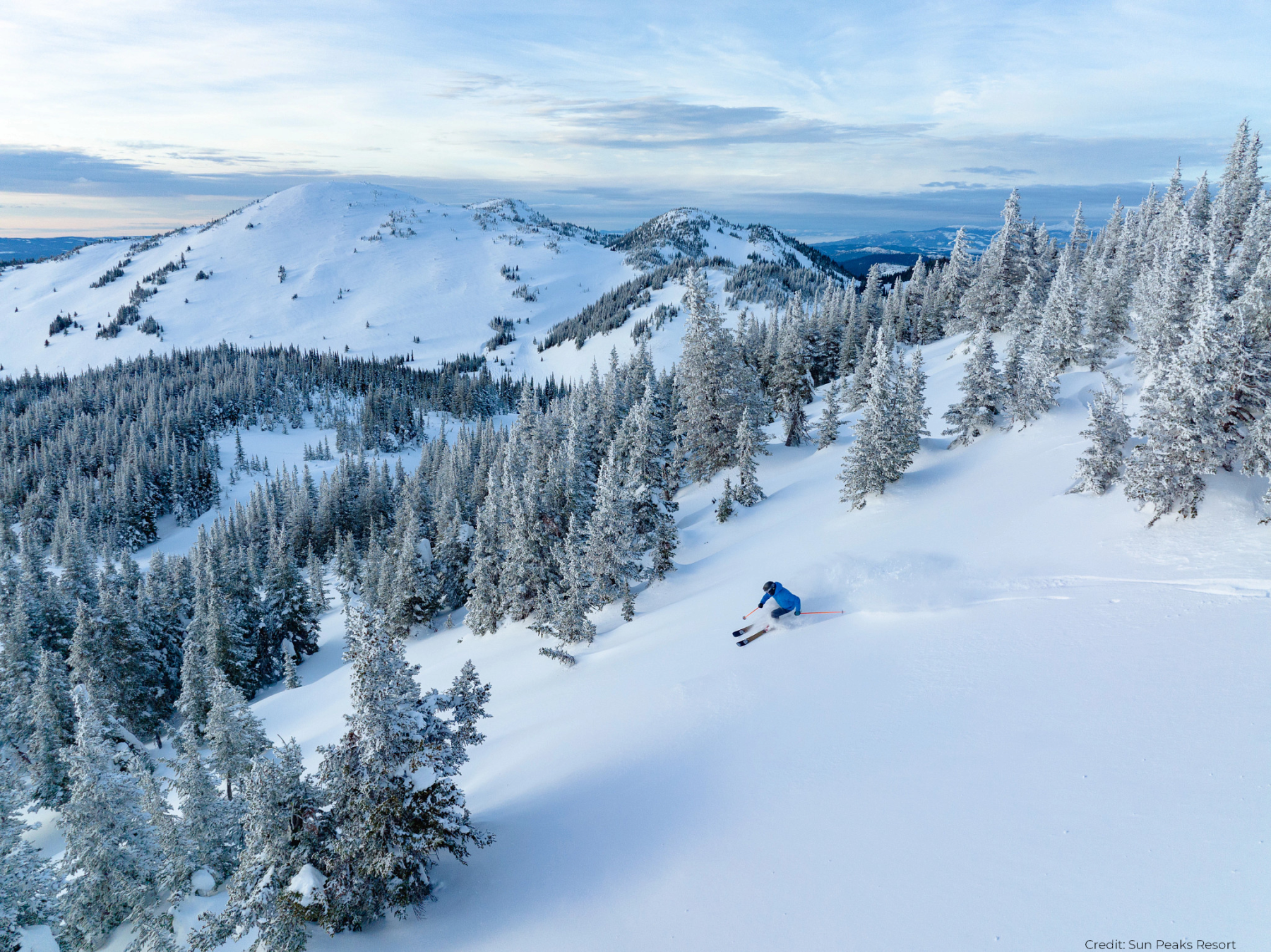 Sun Peaks enchants in winter with its charming alpine village, varied slopes for all skill levels and the second largest contiguous ski area in Canada in the middle of an idyllic mountain landscape.